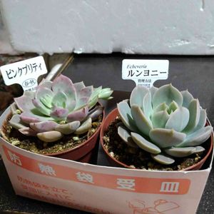 ホームセンターを久しぶりにちょっと覗いてみたら・・・。 「多肉、どんなのがあるんだろう?とりあえず、ちらっと見て帰ろ。」なんて思ってたんですけどね。見てみたら「あら!ルンヨニー、ピンクプリディ‼️GSの人達がこの多肉、投稿してるの覚えてる‼️名前、聞いたことある‼️」なんか嬉しくなって、「でも買い物するつもりなかったからポイントカード持ってきてない❗・・・明日!明日、もう一度来てまだあったら買おう!」そう決めたのにお店出たとたん、「あ、でもやっぱり欲しい‼️」の気持ちが強くお店に戻り買いました❤️サイズが大きいと感じて何故か、こういう多肉さんは興味なかったのですがやはりGSの方達の影響でしょうか。好きになってきました。でもやはり知らないって怖いですよね。車の中で買ったこの2つをしげしげ見つめてて「あれ?ピンクプリティになってる‼️?ピンクプリディじゃない❗」な~んて思ってて。今日までピンクプリディだとばかり思っていました❤️でもルンヨニーもピンクさんもしっかりとした綺麗な姿❤️2つとも198円‼️良いお買い物したと思って満足です🎵