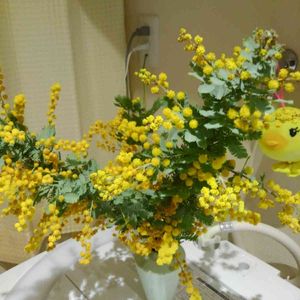 今日はミモザの日。このミモザはスーパーで買ってきました❤️ このミモザを包んでいたセロハンに『3月8日はミモザの日』って書いてあったのですが買ったのは六日頃。次の日から硬い蕾がプクプクになって、すごい可愛い‼️暖かくなってきたって事ですね❤️ 長いミモザを半分に切って花瓶に挿しました。若いとき生け花を習っていて雪柳、コデマリの枝を地面に挿しておいたら根が出て楽しませてくれてます❤️だからこのミモザも根っこ出るかなあ、出たらいいなあと思っていますが。