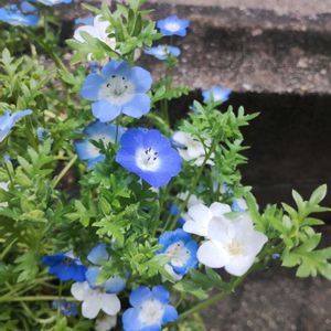 白いネモフィラ💙 狭い土スペースに蒔いたネモフィラ、放置気味で遠目から眺める日々でしたが、よく見てみたら真っ白な花が咲いてた!😆 種をくださった花友さんも見たことがないそう、、、調べると突然変異でたまに出現するみたいです🌟ラッキー❣️ 🏷️美しく青きドヨウ