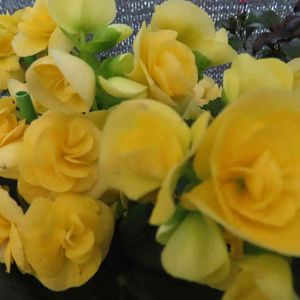 駅ビルのピンクと黄色のリーガースベゴニアの花、可愛いです💕