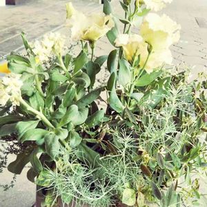 関西に住む両親が、大山の紅葉ドライブをしながら、遊びにやってきました。そこで、花好きの母に、寄せ植えを作ってプレゼントすることにしました。 母をガーデンショップに連れて行くと、目が♥️に❗ まぎれもなく老女ですが、中身は少女そのもののような母が選んだのは、 ラズベリーカラーが可愛い、植田さんのビオラ「天の羽衣」、ミックスカラーのアリッサム、白のカルーナ、どんな花色にも合うからと白の塗りの鉢。 出来上がりにとても喜んでくれたので、ちょっといいお土産になったかなと思います。