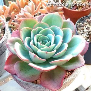【エケベリア属 アトランティス】 Echeveria 'Atlantis' 別名 アトランチィス やや波紋の葉は、 パウダーがかったクリーミーな緑💚 七福神とよく似ています ICNやビスタさんのサイトでは 「Renee O'Connell さん作出のハイブリッド」 との事 更に調べると韓国で、 【Echeveria 'Peaches and Cream'】 【Echeveria 'Peach Icecream'】 で呼ばれているそうです これを日本読みにしたら、 【ピーチアンドクリーム】とか 【ピーチスアンドクリーム】とか 【ピーチアンクリム】とか 【ピーチスアンクリム】に 色々な名前になってしまい、 やがてそれは韓国苗として 流通してしまうのでしょうか お詳しい方、教えて下さいませ ( ꈍᴗꈍ)
