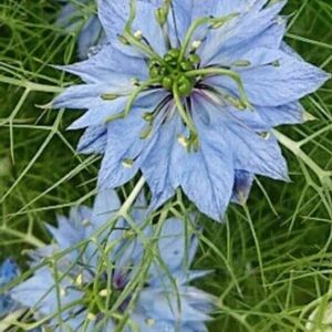 今日3枚目はニゲラ🌿💠🌿 アスファルトの隙間から生えて 力強く咲いてた子🌿💠🌿 🏷(祝)青い花マニア3周年 お祝いpostです💓🤗💓