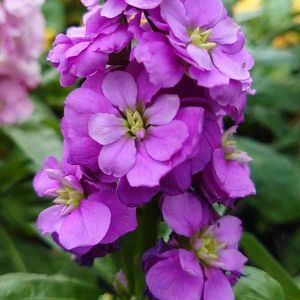 今日のお花、ストック😊 ビンクやクリーム色も素敵ですが、やっぱりこの色が好き💜 紫色のストックの花言葉は おおらかな愛情です😍 ひとつひとつのお花も可愛いです💠✨