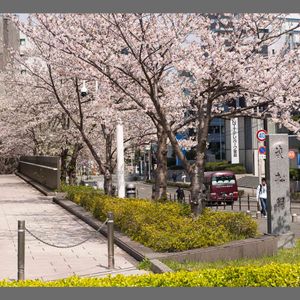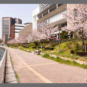 20190407大阪堂島リバーフォーラム前 サクラ並木の散策路。 とっても良いお天気,散歩するには最高です。高層のマンションなんかも多く,都会のまっただ中に住んで居られる方もそれなりに多いのだと分かりました。