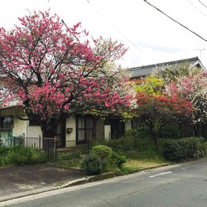 豊川市牛久保にて 20190414 ハナモモでしょうか?白やピンクのお花で囲まれた素敵な家がありました。