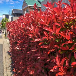 訪問先の町のレッドロビンの生垣が真っ赤に芽吹いていました。