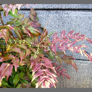 ご近所GS散歩で見たヒイラギナンテン。綺麗に複雑な色に紅葉していてきれいでした。プチプチの実が印象的です。