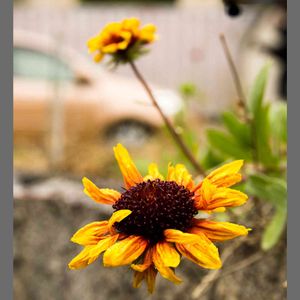 徳川町から白壁町へ、秋の花のルドベキアがまだ残っていて、雨に濡れていました。