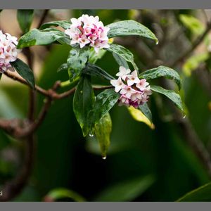 雨に濡れるジンチョウゲ。この雨が春の芽吹きや開花を促してくれるのでしょう。この頃の雨を催花雨というそうな。