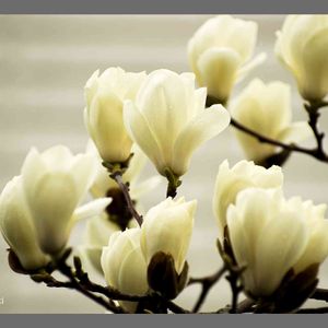 通り沿いに木蓮の並木が続きます。白い大きな花が咲いています。花びらには雨粒が。結構本降りになってきました。