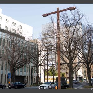 名古屋桜通が堀川に掛かる桜橋東交差点付近にて。11月末に訪れたときは全面黄金色の紅葉でしたが,今はすっかり葉を落とし冬木立になっています。繊細な枝が綺麗でした。