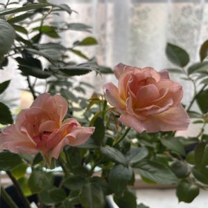 今日のバラ🌹 カーテン開けたら バラが咲いてた❗️ 小さいし、ちんくしゃ⁉️ 嬉しさとモヤモヤ.....。 皆さんがアップしてる様な 立派なバラにしたい‼️ でも素人の私でも咲いてくれた✨ 事に感謝、かな(笑) 匂いはどちらもあって違う匂い。 良い香り💕