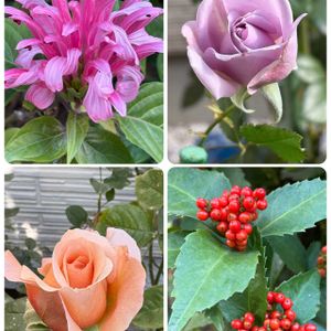 ①今年6月に新苗でお迎えしたトリニティ *..❁。ฺ.* 本来、縁にフリルが入ってふんわり咲く花形なのですが、若い株らしくピンとした花弁が初々しいです( ⸝⸝•ᴗ•⸝⸝ ) ②ぽつぽつと返り咲きするアンジェラ‧.*॰ஐ.。゚ 房咲きも🌸🌸🌸 ③G.D.ルイーズ ‧₊.*✳︎。 雨で花弁が傷みましたが、ピンクX山吹色の個性的なグラデーションが健在です ④4月に小さな苗でお迎えしたサルビア アズレア*ღ 。゚‧ 初開花しました😊 ⑤ラズベリー インディアンサマー‧。✻ฺ.‧。 甘ずっぱいラズベリーの実🎈が初夏にも実って、この秋🍂ニ度目の収穫です♪(๑´∀`๑) 3月から丈10cmの苗🌱から育てましたが🪴初年度から二度も実を食べれると思ってなかったので、感激です٩(๑′∀ ‵๑)۶