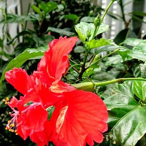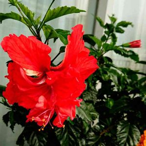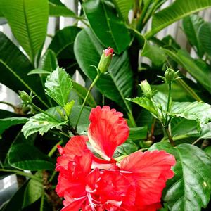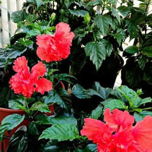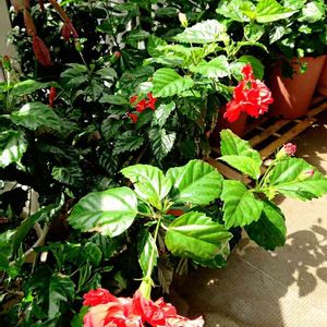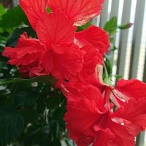 ハイビスカス レッドフラミンゴ 2段咲きするハイビスカス🌺 2段目は雄しべが花弁化したもの