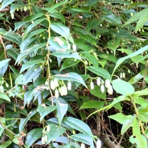 岩南天(イワナンテン) ツツジ科 イワナンテン属 花期 6〜7月 分布 本州の(関東以西から中部地方南部、紀伊半島の太平洋側) まだ、蕾でしたが、今年も見られて良かった〜(。♡‿♡。) 崖の上から垂れ下がる、地域限定の、私だけが場所を知る(と思っています(^^))珍しい植物です。 初めて見つけてから4年。 毎年、気になって出かけていますが、今年も無事を見届け、コッソリ胸を撫で下ろしています(•‿•)