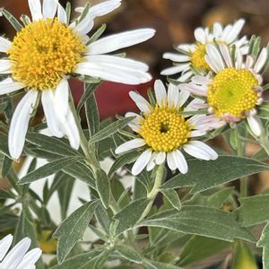 ナカガワノギク(那賀川野菊) キク科キク属 花期:10〜12月 分布:徳島県那賀川の流域 ・葉は、長さ4〜5㌢幅1.5〜2.5 ㌢の倒卵状楔形。上半分は3中裂 しています 表面は緑色で短毛が密生 ・頭花は直径3〜4㌢ 舌状花は1〜2列に並び白色、 後に淡紅色を帯びる。 ・総苞片は3列に並びほぼ同長 以前よりフォロワー様に見せて頂いていたナカガワノギク♪ 分布は特に徳島県の那賀川中流域周辺に限定されています。 徳島県の那賀川町なら私も良く知ってる場所なので見たい❣️とずーっと思っていました,(因みに那賀川流域であって、那賀川町ではないそうです。徳島を出て長く少し勘違いでした)今回は東京の社会教育施設の野草園の中で植木鉢で見られました🙌 咲き進むと後に赤色を帯びてくるようですね! ①の右側の花弁が少し赤くなっています。11/16の撮影です。 11/22に再度見に行けば赤く色付いた花弁はもう終わっていました。 そしてフォロワー様は、この細長い葉っぱに関して、那賀川の中流域の岩場に自生するので、水嵩が増したら浸かる為、水の流れに抗うようにこのような細長い葉をしてるのが特徴だ!と書かれていました。 なるほど🤔菊らしい葉っぱでない理由がわかりました🤗 すみれさん、ありがとうございます😊 この野菊は那賀川の中流域に限られた範囲に分布しており、環境省では絶滅危惧II類に指定されており、地域的な個体群保護が進められているそうです。 ※ ナカガワノギクは徳島県の那賀川中流域とその支流のごく限定された川岸の岩場にのみ自生する地域固有種です。