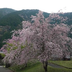 山に行ってきました!斜面をよじ登っているときは晴れて暑かったのですがお弁当を食べるタイミングで曇っていて少し肌寒かったです。 休憩場所では枝垂れ桜が咲いていてちょうど見頃。期せずしてお花見です。山の斜面の近くにあるそれなり有名観光地。遠すぎでよく分からん! あ、メインのワラビは出始めでまだいつもの半分くらいでしたまる