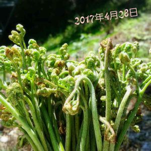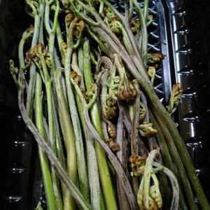 天気が悪いので畑仕事はおやすみ···? そもそも苗ができてないので藪の刈り倒しくらいしか できることがない なので山菜採りです ワラビと···右のはクイズです 何でしょう?