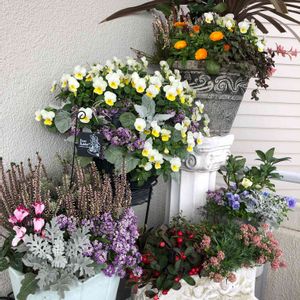 西側ベランダ ハンギングバスケット💜🍀💐💖 先日お連れした、ブラックビオラと、ミニシクラメン💖 色が変わるビオラ✿💜 オセロブルー 白からブルーへ。 不思議なビオラ‼💙