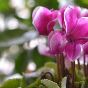 朝日を浴びるミニシクラメンの花✨ ピンクのグラデーションが鮮やかで目が覚める💕 華やかな気持ちになる