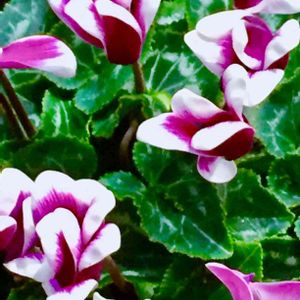 今日のお花 シクラメン♡ 昔に比べたら、 色、花のカタチ、葉の斑の入り方なんかも 本当に種類豊富になりましたね〜♬ GSユーザーさん方々から珍しい子のpic見せて頂くと 胸がときめきます♬🥰😍