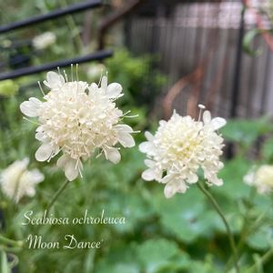 スカビオサ ムーンダンス🌸 ほんとは黄色のお花のはずなんだけど、白っぽいなぁ😅 やっと花数が増えてきて、白いお月様が踊るようにフワフワと咲いてます😂 以前、夏越しに失敗しちゃったから、今度は宿根してくれるといいなぁ。