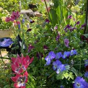 晴れの日のお気に入りコーナー☀ ただ鉢を運んで並べただけ😅 左奥すみっコにDIYで何かコーナーを…と思って計画を進めてましたらね🔨 また予定を変更しないとちょっと…ん?みたいな😂 つまり木とスタイロフォームで組んでしまった骨組み土台のアレが行き場をなくすことになる🤣🤣🤣 予定外のことが入ると小庭は小庭ゆえ、わっちゃわちゃです💦 迷走に迷走を重ねてどうなるすみっコなコーナー😂