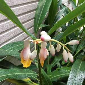 ジメジメして嫌な季節ですねー💦梅雨明けはいつなんでしょ!その後の猛暑も恐ろしいです😩 月桃はさすがに梅雨と暑さには強いですね。蕾がほころんできました。ランのような姿ですけど、蕾のままのがかわいいように思います😅