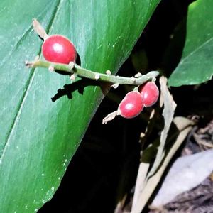 ハナミョウガ(花茗荷) *生薬名:伊豆縮砂(いずしゅくしゃ) *薬用部位:赤い実の中にできるタネ *薬効:整腸・香辛料 おっきな葉っぱと赤い実🌿💞🔴 2019/11/30 北九州市 白野江植物公園