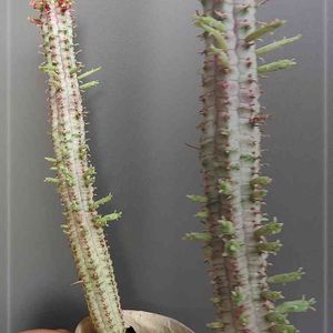 ユーフォルビア属ミルクトロン 別名〜白樺キリン〜 サボテンを真っ白に染めたような姿はとっても個性的! まだ寒い日が続くので、薄くピンク色に紅葉しています。 白とピンクのコントラストが綺麗だな♪
