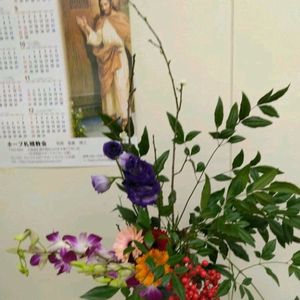 ホープ札幌教会、今日も薔薇🌹を飾った礼拝です。