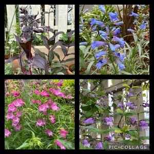 気が付けばペンステモンを4種類も植えてました🤣 左上:ハスカーレッド 銅葉が綺麗。花が咲くと薄暗い夕方に発光するような薄ピンクで神秘的。花期は短い。(この花だけはまだ咲いてません。。。後日upします。) 左下:フラミンゴ🦩 花期が長く常緑&強健。 右上:エレクトリックブルー 神秘的な青と緑と紫の色がエキゾチック。 環境が合わなかったのか、お星様にしてしまった過去あり。。。 右下:スモーリー 紫色の花で野の花のよう。 私と同じく、「放ったらかしでも毎年花が咲いて欲しい!」という方には、フラミンゴをお勧めします🤣