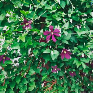 Ⅰ クレマチス エトワールバイオレット ➕ マーガレットあずきちゃん Ⅱ クレマチス エトワールバイオレット Ⅲ クレマチス 水面の妖精🧚 ⅳ クレマチス テッセン ⅴ アイビー🌿 クレマチス達、ヤンチャに伸び放題となっています🤍💚🤍