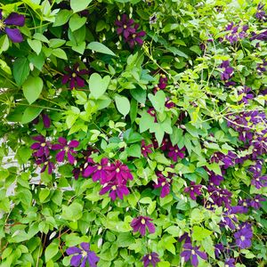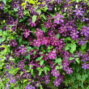 一気に花数を増やしたクレマチスエトワールバイオレット これでもまだ蕾は半分以上残っています