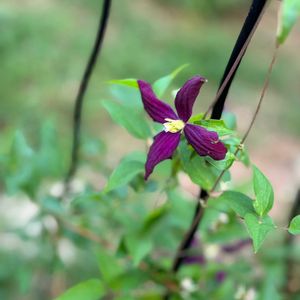 クレマチス エトワールバイオレットが咲きましたꕤ…˖* 紫に赤を少し混ぜたような色合いで、ひらひらしながら咲いています💜 クレマチス⑫