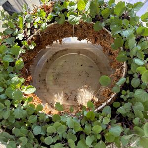🏷️まんまドーラの葉牡丹リース 種蒔きから2か月目です。 全体が大きくなってリースの穴が埋まってしまいました。 少し前に田舎へ行って4日ほど留守にしましたが水遣り隊はしっかりとやってくれたので大丈夫でした👌 が、虫除けネットはかけていたのに小さな虫🐛がたくさん付いていて葉っぱが穴だらけになってしまいました🥲 バッタ🦗も3匹、潜って入ったのかなぁ😅 殺虫剤撒布しましたが、なんだか元気無さそうに見えます。 根詰まりしてるのかしら? 一つ一つが大きくなったので思い切ってしっかり間引きしようか考え中🤔 色も良くないので肥料不足? うーん、、、この前液肥あげたけど。 とりあえずIB化成を所々に埋め込みました。どうかなぁ😒