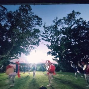今年も親戚宅(5代200年続く旧家)の御庭にて エイサー観賞です。 ガジュマルの樹齢は160年超え 樹高15m(目測) 本日、沖縄は旧暦のお盆 中日(ナカビ)です。