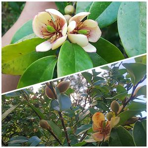 いい匂いです。花のまわり半径2mくらいに甘~いリンゴ🍎の香りがします。 写真下 花の上に写っているのは蕾です。 花の直径は約4cm 「カラタネオガタマ」であることが判明しました。 「金曜日の蕾たち 」参加してます。