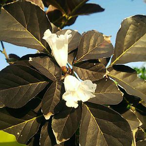 葉っぱが黒いこの木 花を付けてくれましたが、名前が分かりません。どなたか御存知ないですか? 葉っぱが黒いのは病気なのか虫の影響か元々なのかも分からないです。 他アプリ「Plantnet」ではTectona grandis L.f. 「google camera」では白キクラゲと出ました。😖 樹高3m 樹勢弱い