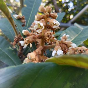 今日のお花がビワ ちょうど咲き始め 投稿ついでに摘蕾します。 (失念してた😅) 2枚目は摘蕾前 3枚目は摘蕾後 先端部と根元の蕾を取り除く感じで (専門外のため俺流です。) この作業をするだけで実の大きさや味も変わるし翌年の実付きも良くなる