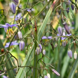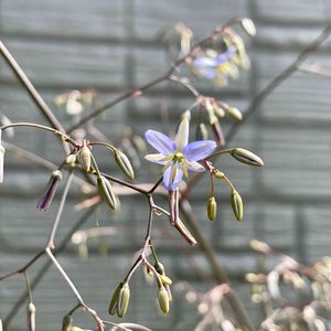 ディアネラ・ブルーストリーム (キキョウラン) 3月に新設花壇に植栽されたディアネラ シュッと伸びた青みがかった葉に薄い青紫の小花が咲きました