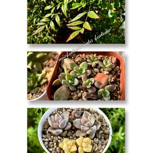 1️⃣南天の葉がやっと色づいてきました🍁 南天は「難を転じる」に通じる縁起木ですね。 2⃣そして、難を転じて福となった葉挿しっこ。 夏にバラバラになったピンクプリティ ×ロメオ💧 葉っぱは無事だったようで、葉挿しっこがすくすく育っています✌🏻✨ 3️⃣セダムの草むらの中で育っていたティテュバンス錦の葉挿しっ子を拾って鉢に入れました。 オバケと呼ばれる全斑株は光合成できず枯れる可能性が大👻 でも、可愛いのでしばらく育ててみます。 ティテュバンス錦はオバケが生まれやすいのが難点ですね。 (南天で始まり難点で終われて、満足している自分がいます。) 🏷️毎月13日と14日は葉挿しの日 に参加させていただきます!