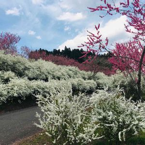 中之条ガーデンズからももう1枚、ユキヤナギと花桃のコントラストです❣️❣️