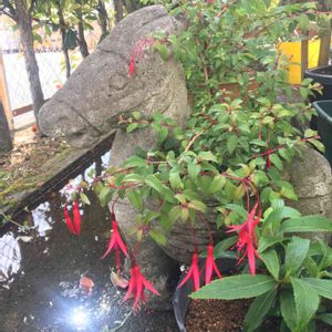 冬越ししたフクシアさん♪ 道路側花壇でブラブラ〜〜🎵