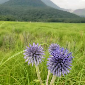 ヒゴタイ(平江帯…肥後躰) キク科 分布…本州 愛知.岐阜.岡山.広島 四国.九州 花期…7~9月 草丈…1~1.5㍍程 頭花の大きさ…5㌢程 一つ一つのお花は 瑠璃色で美しいです✡️* 絶滅危惧∥類 8月24日 大分県くじゅう⛰️ たで原湿原.標高千㍍程で🤳