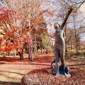 彫刻公園では紅葉🍁だけでなく、 66点の彫刻芸術も楽しみながら散策できます。 ③〜⑤湿った森の針葉樹等に付着して成長する地衣類。 湖の側の公園だからでしょうか‥‥