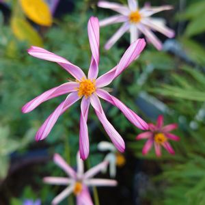 チョコレートコスモス 赤とんぼ あわゆき 寄植えにした〜💛 チョコレートコスモス???と、改めてタグ見てビックリ〜花弁がくるっと巻いて咲く姿から「赤とんぼ」と、名付けられた〜珍しい白花品種