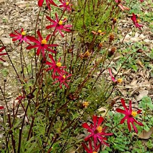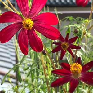 チョコレートコスモス、 その名は、「赤とんぼ」。 秋空に、気持ちよく飛び回る、 赤とんぼのようなコスモス。 お庭に咲かせたいと思います。
