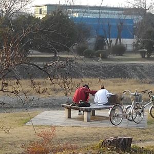 休日 鴨川沿いで ギターを弾く二人 何だか 癒されました❤️